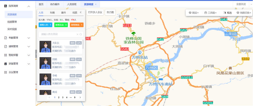 萬州區(qū)智慧城管綜合執(zhí)法系統(tǒng),通過將指揮調(diào)度所需的人、事、物等各要素置于電子地圖上,將靜態(tài)個人置于動態(tài)全局中,使執(zhí)法指揮調(diào)度通過信息技術(shù)手段打破行政層級,實現(xiàn)橫向指揮到面、縱向指揮到點的可視化扁平指揮。在指揮調(diào)度的制度上,采用權(quán)責(zé)同步轉(zhuǎn)移的方式,實現(xiàn)塊狀扁平化調(diào)度、金字塔指揮的運作模式,建立起“呼得通、看得見、調(diào)得動”的平戰(zhàn)結(jié)合響應(yīng)能力及調(diào)度體系。
