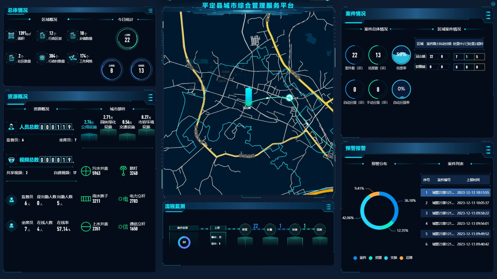 平臺按照《數字化城市管理信息系統第8部分:立案、處置和結案》要求,建立了相對應的“一級監督、一級指揮、統一考評”的運行模式。建立了包括信息采集、案件建立、任務派遣、任務處理、處理反饋、核查結案和綜合評價的7步閉環流程。并且,平臺建設完善了業務指導、指揮協調、工地渣土、績效考核、綜合執法、可視化展示、行業管理分析、綜合情況分析、專項治理分析、智能井蓋、可視化調度以及視頻監控等應用系統。通過平臺的業務指導、可視化調度、視頻監控等系統,基本實現智能數字城管一網全辦理、城市治理云圖一圖全監管、可視化指揮調度一體全聯動,切實提升了人民群眾對城市管理的滿意度。